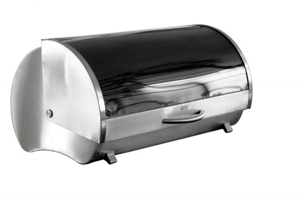 The Rondo bread bin comes in an elegant design. Its safe, convenient lid mechanism and the large opening mean you can store bread products of all kinds and sizes perfectly. Its kidney shape gives it a stable base and makes it easy to carry. Rondo ensures that bread will retain its moisture and stay fresh and tasty. Flavor preservation is guaranteed with “Rondoâ€? The bin is well aired so that the bread does not sweat. The darkened glass panel with scratch-resistant safety glass not only protects against sun and light but stops baked goods drying out quickly. Small vent slots between the lid and the bin guarantee the optimum in fresh air circulation, which prevents mold and sweating and preserves flavors. “RONDOâ€?doesn’t scratch. The elegant black feet to suit the kidney-shaped stainless steel bread bin are made of nylon and therefore slip-resistant and very gentle on storage and work surfaces.