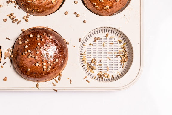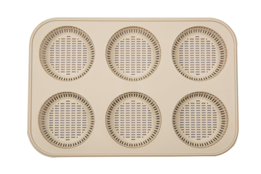 -The pleasure of creating with your own hands, choosing carefully the raw materials, preparing genuine dishes for yourself and for your loved ones. With the silicone mould Burger Bread by Silikomart you will transform a simple sandwich in a gourmet burger. The perforated pattern of the mould allows the free circulation of heat without condensation obtaining 6 crunchy burger buns with golden brown color and homogeneous cooking. Enjoy the sensations of traditional homemade bread. Oven, freezer, microwave, and dishwasher safe.