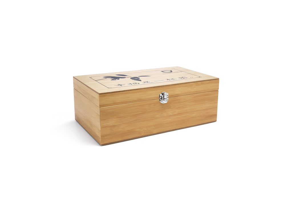 The Chengdu gift set consists of a cast iron teapot with 4 matching 5 fl. oz porcelain cups. A great gift to give to someone or even to keep yourself! The combination of the glossy and matte black porcelain gives the beautiful cups a luxurious look. The gift set comes in a beautiful lockable bamboo box. That makes for an even nicer gift and handy for storing the set. The teapot has a 34 fl. oz capacity.