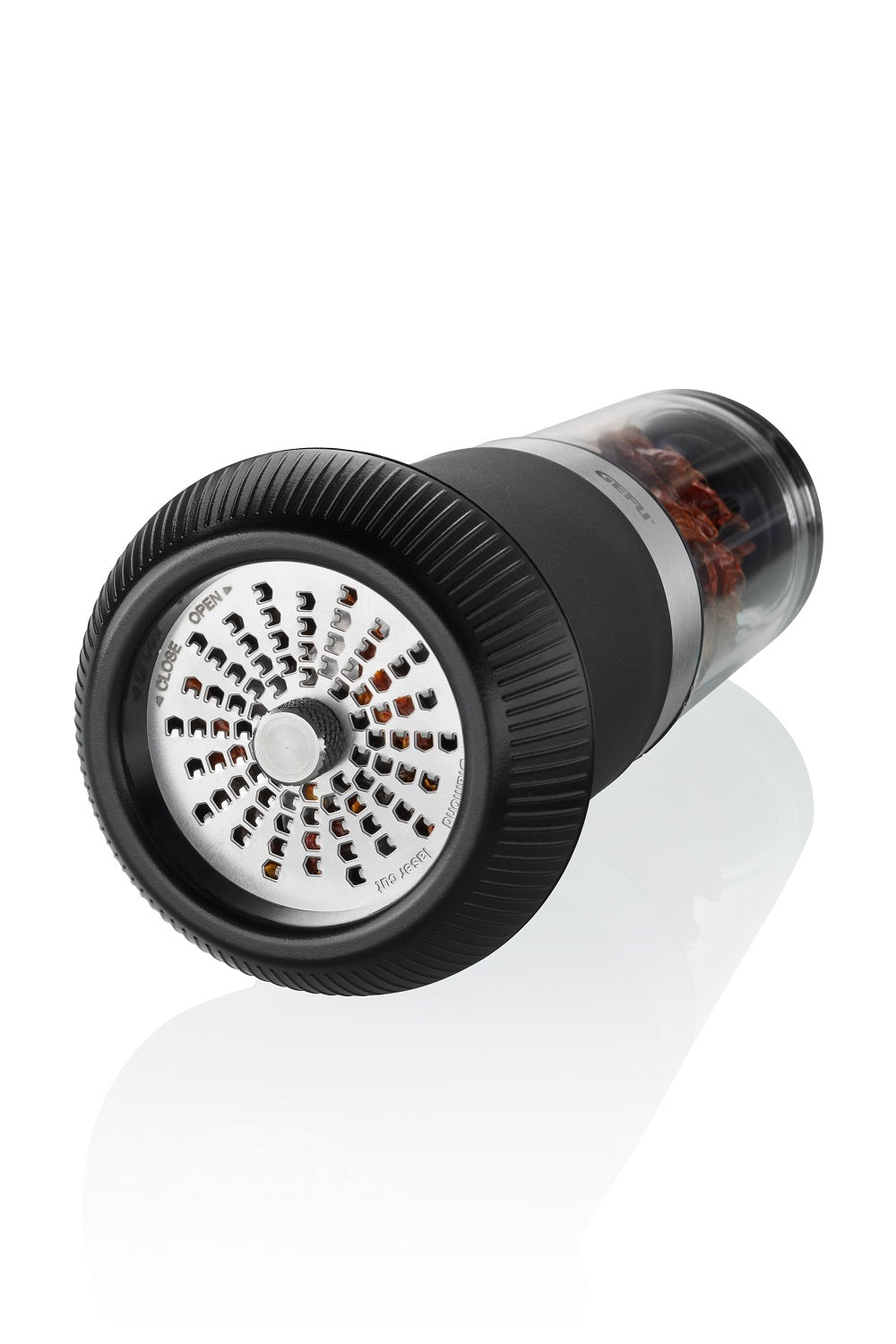 Some like it hot! The stylish X-PLOSION chili cutter sets off a real explosion of intense heat and exotic flavors. Its extra-sharp DIAMOND LASER CUT blade cuts the chili into especially uniform slices, making it easier to precisely adjust the amount you add �from mildly spicy to burning hot.- Extra-sharp, corrosion-resistant DIAMOND LASER CUT stainless steel blade for the utmost precision and efficiency- Easy-refill spice chamber- Airtight lid to optimally seal in aroma and protect against moisture- 6,2 cm, H 15,0 cm- High-grade stainless steel / high-grade blade steel / plasticThe X-PLOSION chili cutter makes it exceptionally easy to precisely adjust the amount you add, as the innovative DIAMOND LASER CUT blade cuts the chili into especially uniform slices. You can see the difference �and taste it: balanced, full-bodied spiciness. The perfect cut is the final touch that brings out the essential oils in the chili, simply making the most of the little red peppers. But the taste is not the only difference this precision tool makes in the kitchen: it stands out for its looks, too. The fiery red chilli peppers in their transparent spice chamber really catch the eye, even from a distance. 20 year guarantee