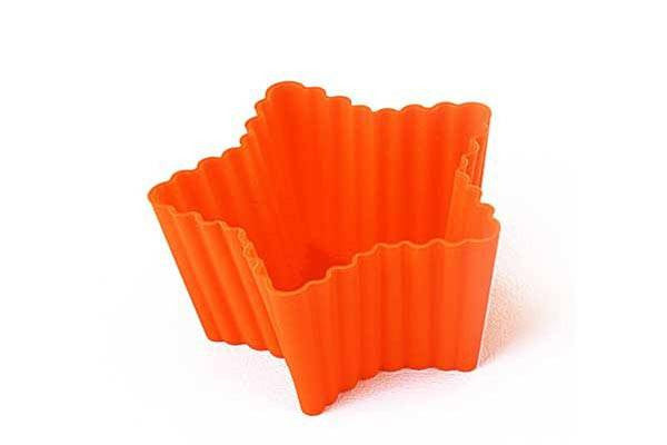 -Star is the star shaped mould in a sunny orange colour with which you will realize star shaped goodies to decorate with the practical Alimentary Markers signed Silikomart or with the Sugar Paste and the Chocolate Paste. Each package of small cups encloses the exclusive cookbook.Size:70 x 66 h 36 mm Volume: 420 ml Oven / microwave proof-Freezer / blast freezer proof-Dishwasher safe