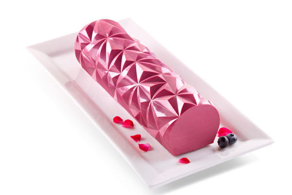 The log is the classic form for parties and making it has never been easier. Thanks to DIAMOND BCHE by Silikomart you can get a flawless result in a few simple steps. The mold is made up of a plastic support inside which you can insert one of the two glittering gold silicone mats and voilà, les jeux sont faites! Just one support, several preparations: you can create a perfect log with different textures just changing the mat. In the kit you will find a smooth mat and a wonderful faceted textured mat that will cover your semifreddo of precious diamonds. A real jewel on your table.Size:80 x 250 h 67 mmVolume:1,2 l* This article is not suite for the oven