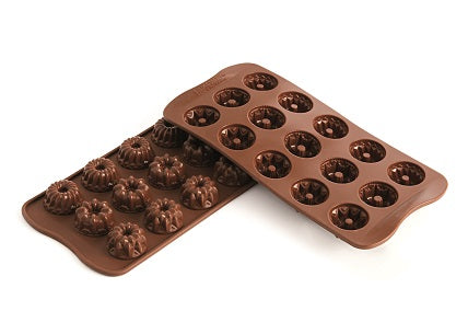 -Fantasia, of the range Easy Choco, is the classic and elegant mold that allows you to create mini chocolate gugelhopfs. The mold Fantasia allows you to make 12 elegant chocolates per mold. Inside the package you will find a very useful recipe to create perfect chocolates. Microwave, oven, freezer, and dishwasher safe.-Size: 28 h 15 mm-Volume: 98 ml