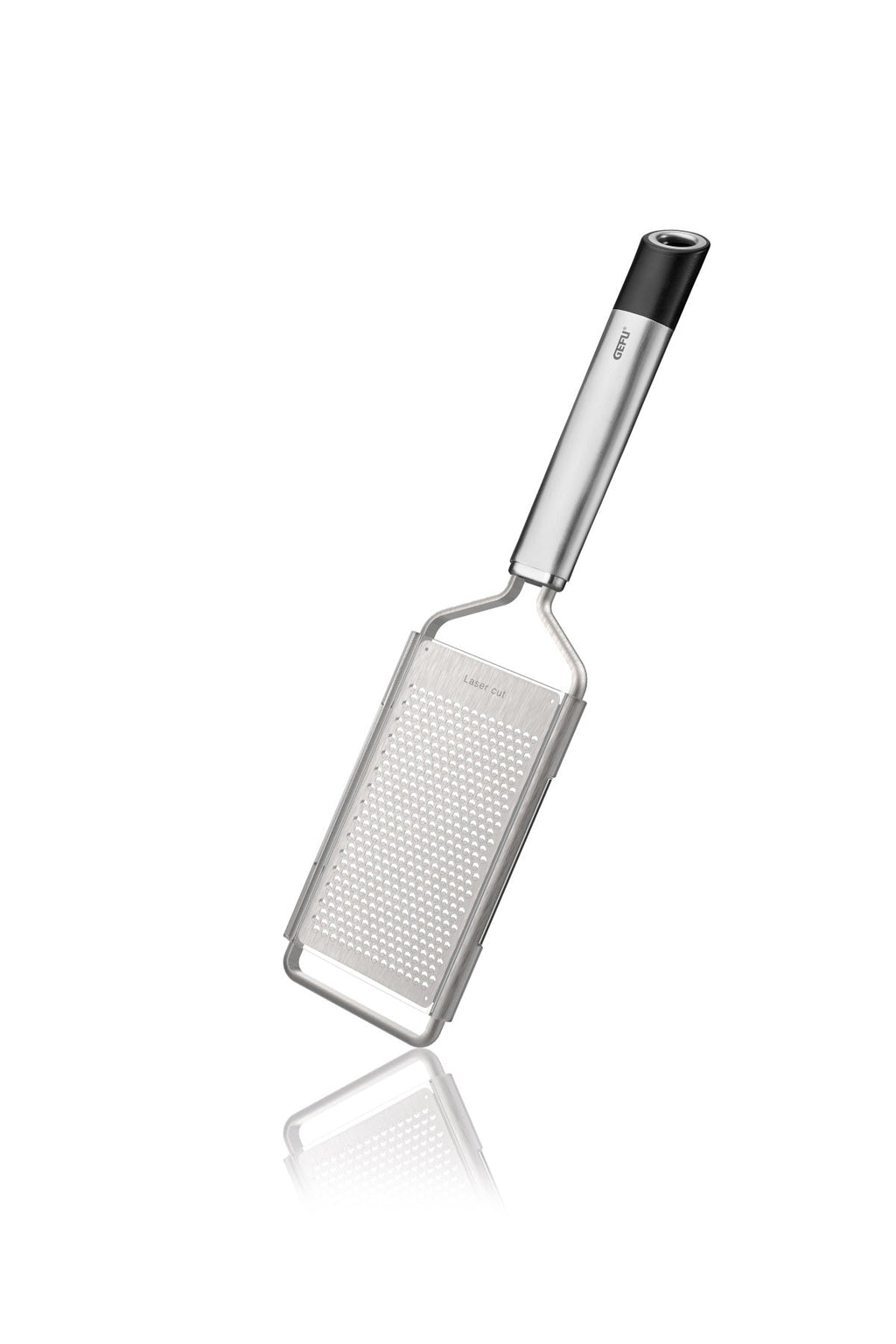 - Ideal for use at the table - Extremely sharp LASER-CUT blades - Concave grating surfaces for safe work - Ergonomically shaped handle - Protective cap included - L 27,9 cm, W 6,9 cm, H 1,8 cm - High-grade stainless steel / plastic - Dishwasher safe 20 year guarantee