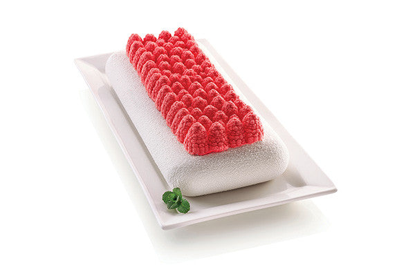 The new trend is FRUITY! A series of silicone moulds to create juicy fruit-shaped creations with an original 3D effect. Impossible to resist the delicate taste of the raspberries that will cover your desserts created with the Frutti Rossi kit. This kit is composed by a silicone mould for the base that is provided with a revolutionary internal border that gives a slight rounded shape and a second silicone mould to recreate a realistic and a suggestive carpet of raspberries. These amazing little fruits in 3D will enchant you at the first sight. Frutti Rossi kit ensures flawless results not only in semifreddo version, but also with baked creations.Size:280x120 h 65 mmVolume:1510 ml