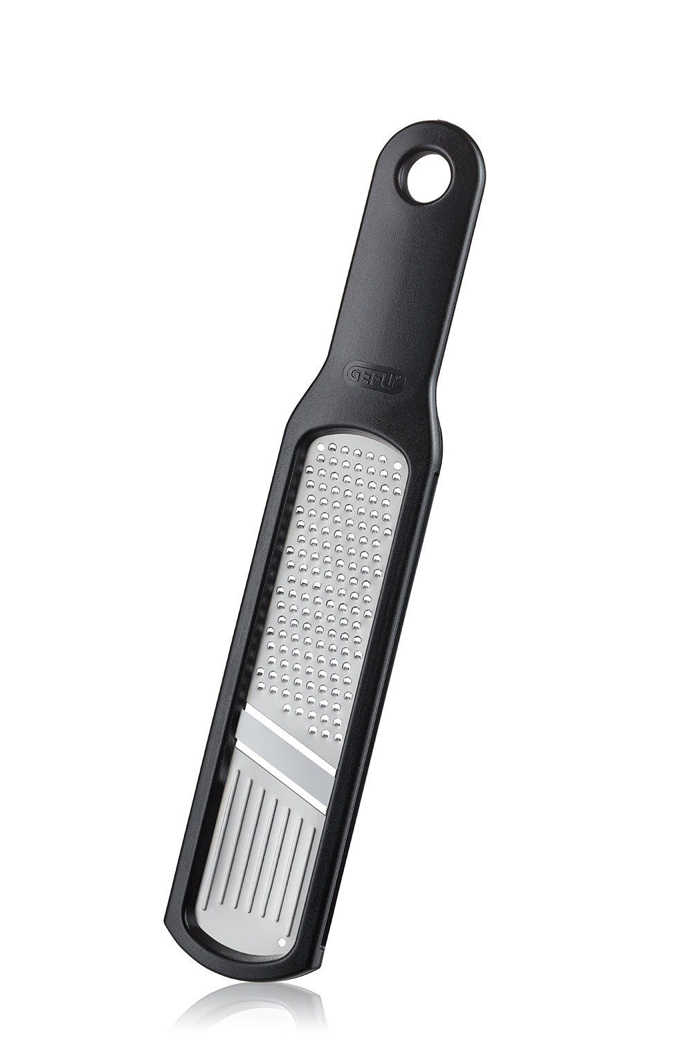 Doubly talented for fine seasoning! Both the front and the back of the RAFINO can be used quickly and effectively, one for finely grating garlic cloves and the other for thinly slicing them. Also good for ginger.
