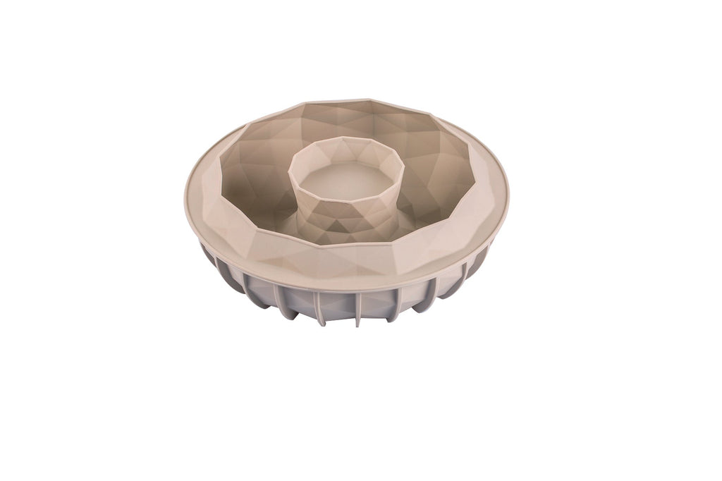 -The stunning beauty of a precious stone will shine on your table thanks to the Silikomart GIOIA mold. Its multifaceted pattern, as that of a jewelry, will win you at first glance. The mold is provided with a revolutionary internal border which gives a slightly round base to your creations. Gioia guarantees impeccable results not only as a semifreddo or mousse, but also in the baked version. Freezer, oven, microwave, and dishwasher safe. Size: 210 h 70-Vol.: 1660 ml
