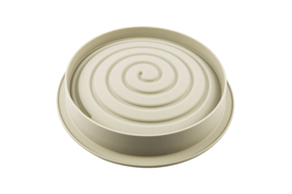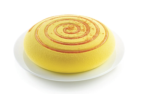 -Girotondo: a never-ending spiral of taste that will swamp your fantasy! Let yourself be hypnotized by this mold and its refined and well finished design. The mold is provided with a revolutionary internal border which gives a lightly rounded shape to the base of your preparations. Size: 252 h 60 mm Volume: 1680 ml Oven / microwave proof-Freezer / blast freezer proof-Dishwasher safe
