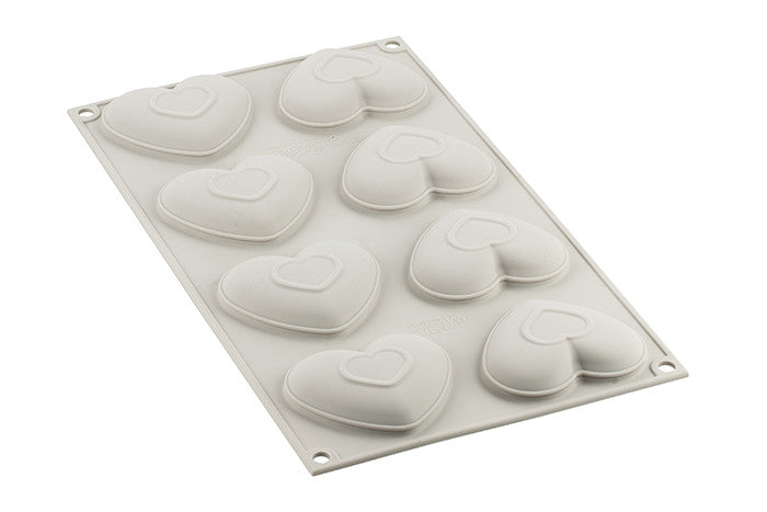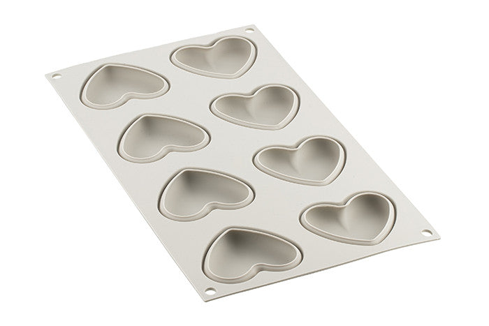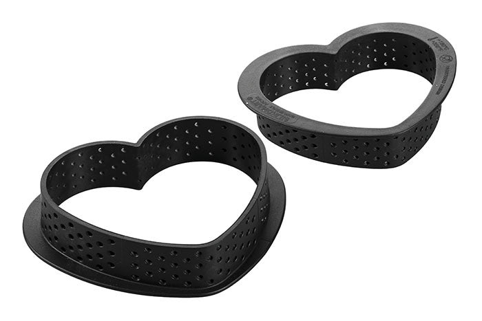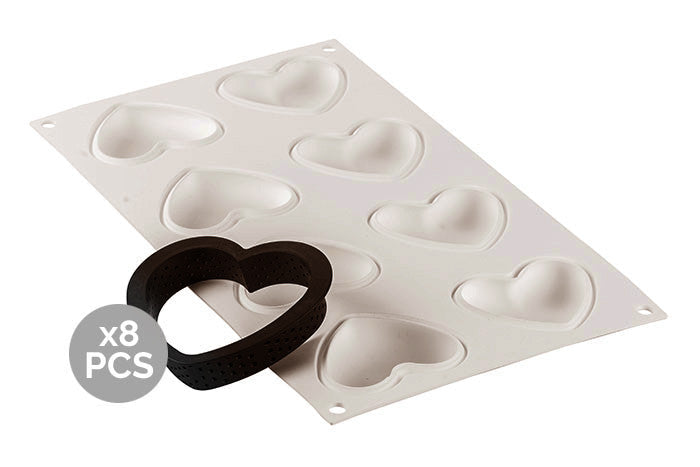 A new way of conceiving the tart and making this traditional dessert even more appealing and contemporary. With the Kit MINI TARTE PETIT AMOUR there is always a good reason to celebrate love. The Mini Tarte Petit Amour Kit by Silikomart consists of two elements: 8 micro-perforated rings for the pastry shell and a silicone mould with 8 heart-shaped cavities for preparing a creamy decorative top. The special 80x70 h 20 mm rings are made of a new non-stick plastic material perfect for a homogeneous baking in the oven. The Kit Tarte Petit Amour is a true concentration of sweetness and contemporaneity for achieving great results and easily make embellished decorated modern tarts combining tradition and innovation.