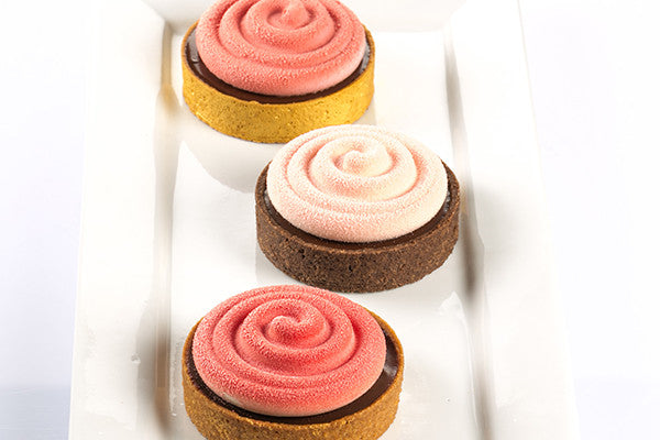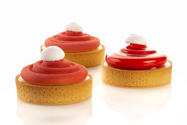 A new way of conceiving the tart and making this traditional dessert even more captivating and contemporary. THE MINI TARTE TWIST kit by Silikomart is composed by two elements: 6 micro-perforated rings to create the shortcrust tart base and a silicone mould that reproduces a spiral decoration. The special rings with an 80 mm diameter are made with a new non-stick plastic material, perfect for a homogeneous oven cooking. The Mini Tarte Twist kit is a real concentrate of sweetness and modernity that allows the creation of modern tarts with an extraordinary decoration on the top.Single cavity size: 70 h 25 mmRing size: 80 mm h 20 mmVolume: 6x53 ml Tot. 318 ml