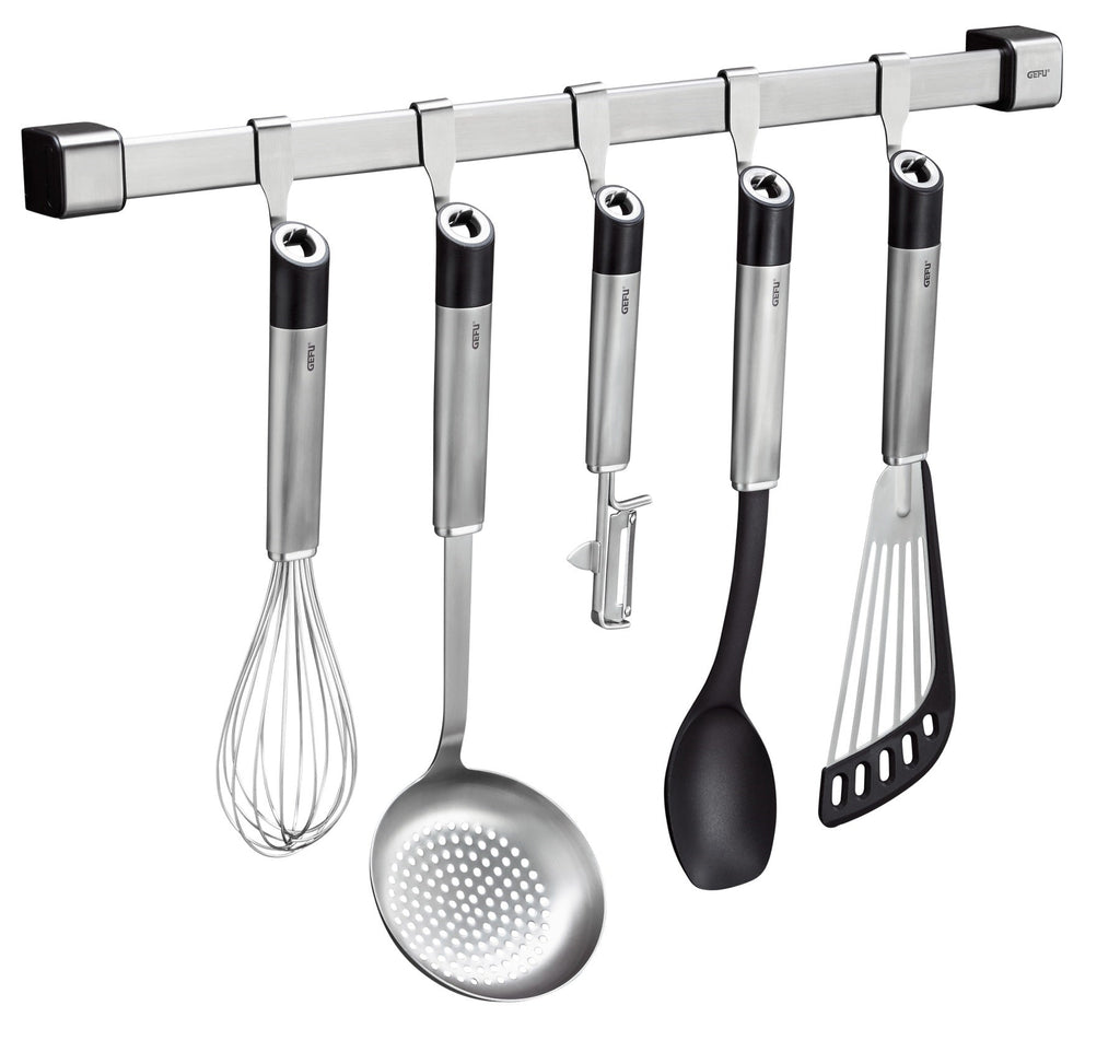 Everything within easy reach �kitchen tools are organized clearly and ready to hand with the easy-to-mount kitchen rack!- Mounting set included- Individually extendable thanks to the connection adapters included in the scope of supply- Ideal for the BASELINE and PRIMELINE kitchen aid series (hooks are required for PRIMELINE, item no. 29251 - not included)- L 50,4 cm, W 3,5 cm, H 3,6 cm- High-grade stainless steel / plastic