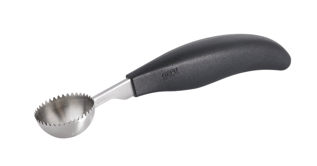 The baller is perfectly suited to shape fruit, vegetables and butter. The sharp-thoothed rim even cuts into harder foodstuffs. The ergonomic handle makes it comfortable to hold.