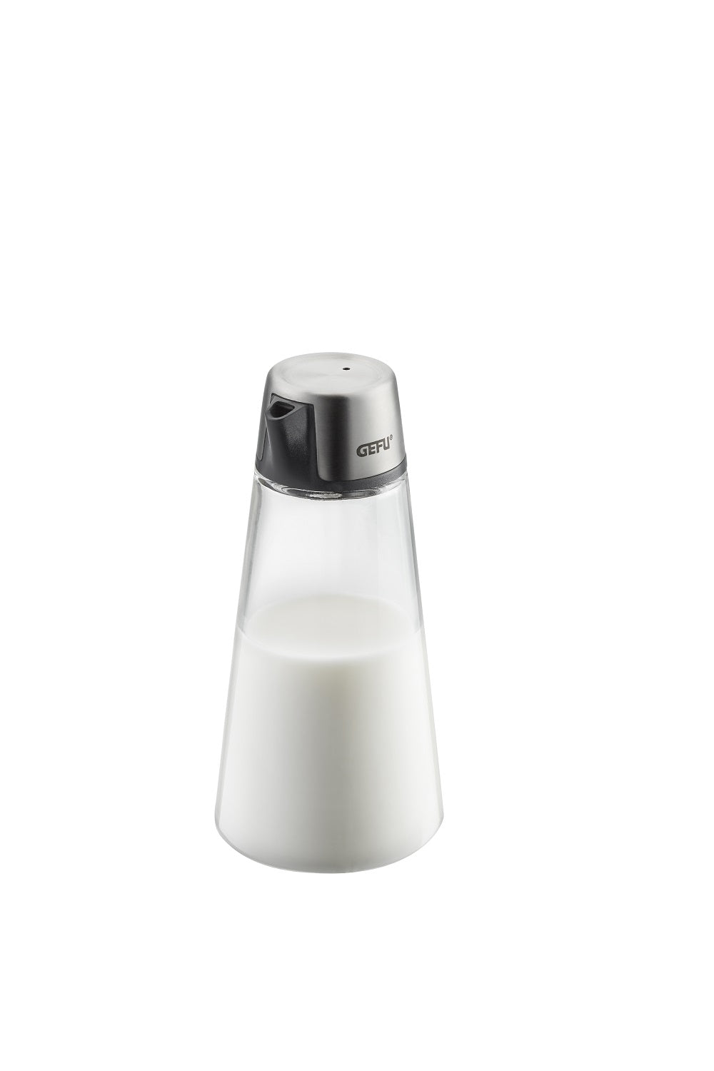 Cream, condensed milk or fresh milk for coffee and tea, for even vinegar for your salad: the milk jug serving jug brings all of them to the table at breakfast or brunch in perfect style. Thanks to its simple, timeless conical shape, the milk jug fits into any table setting. Cream, condensed milk or fresh milk for coffee or tea, and even vinegar for fresh salads and liquid seasonings for soups appear at the table in elegant style. The jug is easy to fill, and the pouring spout integrated in the lid makes it easy to control the flow.- For milk, pouring cream, vinegar or liquid seasonings- Non-drip pouring spout- Easy to fill- Filling volume: 220 ml- 6,8 cm, H 14,6 cm- Glass / high-grade stainless steel / plastic- Dishwasher safe