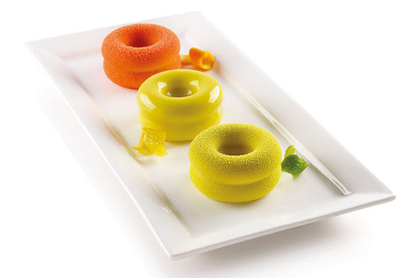 -Small jewels with classic yet contemporary lines. MINI ARENA from SIlikomart's 3Design range is an extremely versatile shape, an original reinterpretation of traditional donut shape in order to create explosions of colors, flavors and textures. The cavities of the Mini Arena mold are provided with a special internal border that gives a lightly rounded shape to the base of your preparations. Mini Arena guarantees impeccable results not only in the semi-freddo and mousse version, but also in the baked version. --- -Oven / microwave proof -Freezer / blast freezer proof -Dishwasher safe
