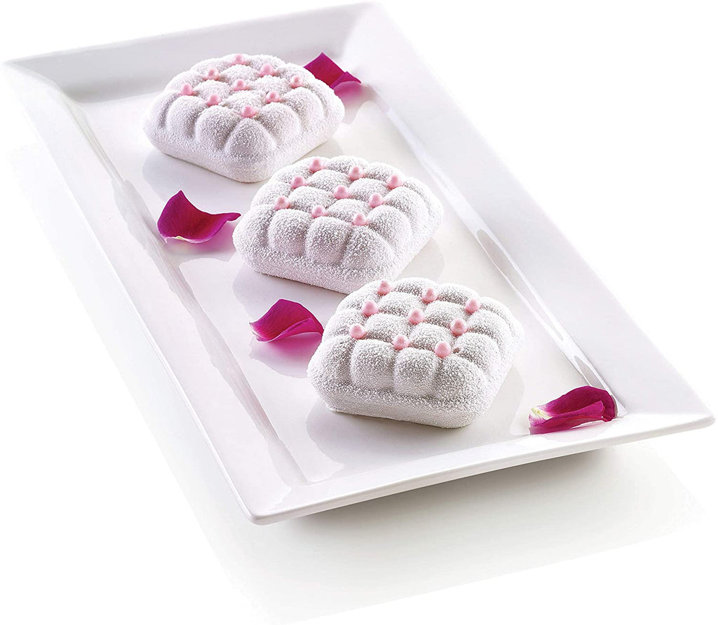 -The refinement of a mono portion characterizes this jewelry box of taste. Six cavities of 100 ml volume each to free your fantasy and make sweet and savory creations! Each mould¡¯s cavities is provided with a revolutionary internal border which gives a lightly rounded shape to the base of your preparations. Size: 70 x 70 h 30 mm Volume: 600 ml Oven / microwave proof-Freezer / blast freezer proof-Dishwasher safe