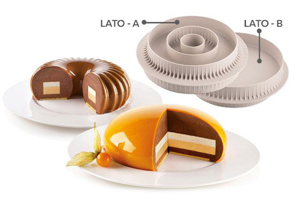 With SIlikomart INSERTO UNIVERSALE ROUND it is possibleto create 3 decorations or inserts of different Sizes: a round insert of 18 ml for Singleportions, a round insert of 600 ml for cake and a 300 ml donut insert to create perfect layers and unexpected colorsand tastes combination.