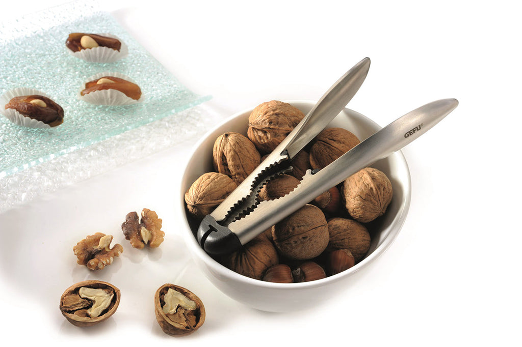 Thanks to a smaller and a larger opening, the robust stainless-steel nutcracker cracks nuts of any kind.