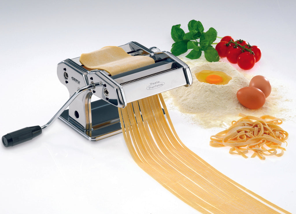 Pasta machine PASTA PERFETTA for the preparation of original home-made pasta. Allowing the production of various types of pasta with just a few flicks of the wrist: tagliolini, tagliatelle and lasagna.