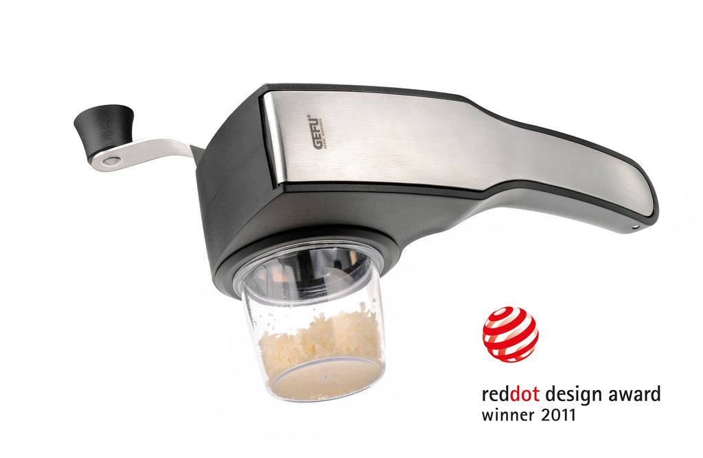 Thanks to its two interchangeable drums, the rotary grater is suited for making shavings and fine crumbs. Just put hard cheese, nuts, chocolate or garlic into the inlet funnel, turn the handle ¨C and done! The sophisticated engineering of the rotary grater allows the almost complete utilization of the material you want to grate while keeping your hands safely away from it and guaranteeing odor-free and clean working. And you are sure to be able to interchange the drums with a few movements. The secret is the sharpness of the grating drums, which it owes to the Laser Cut Technique.