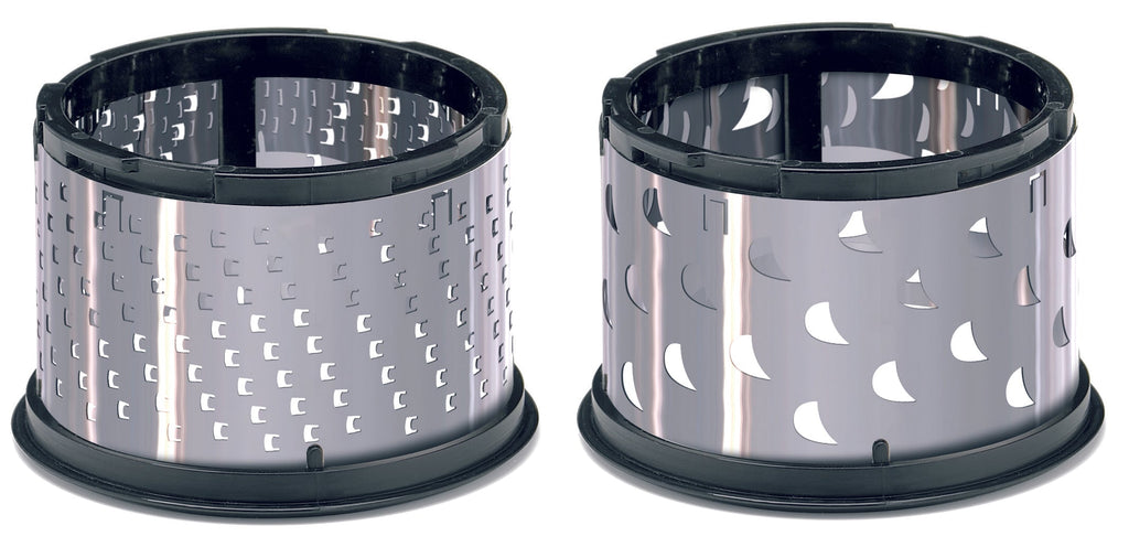 With its two interchangeable LASER CUT grating drums - coarse and fine - the rotary grater is versatile in use.