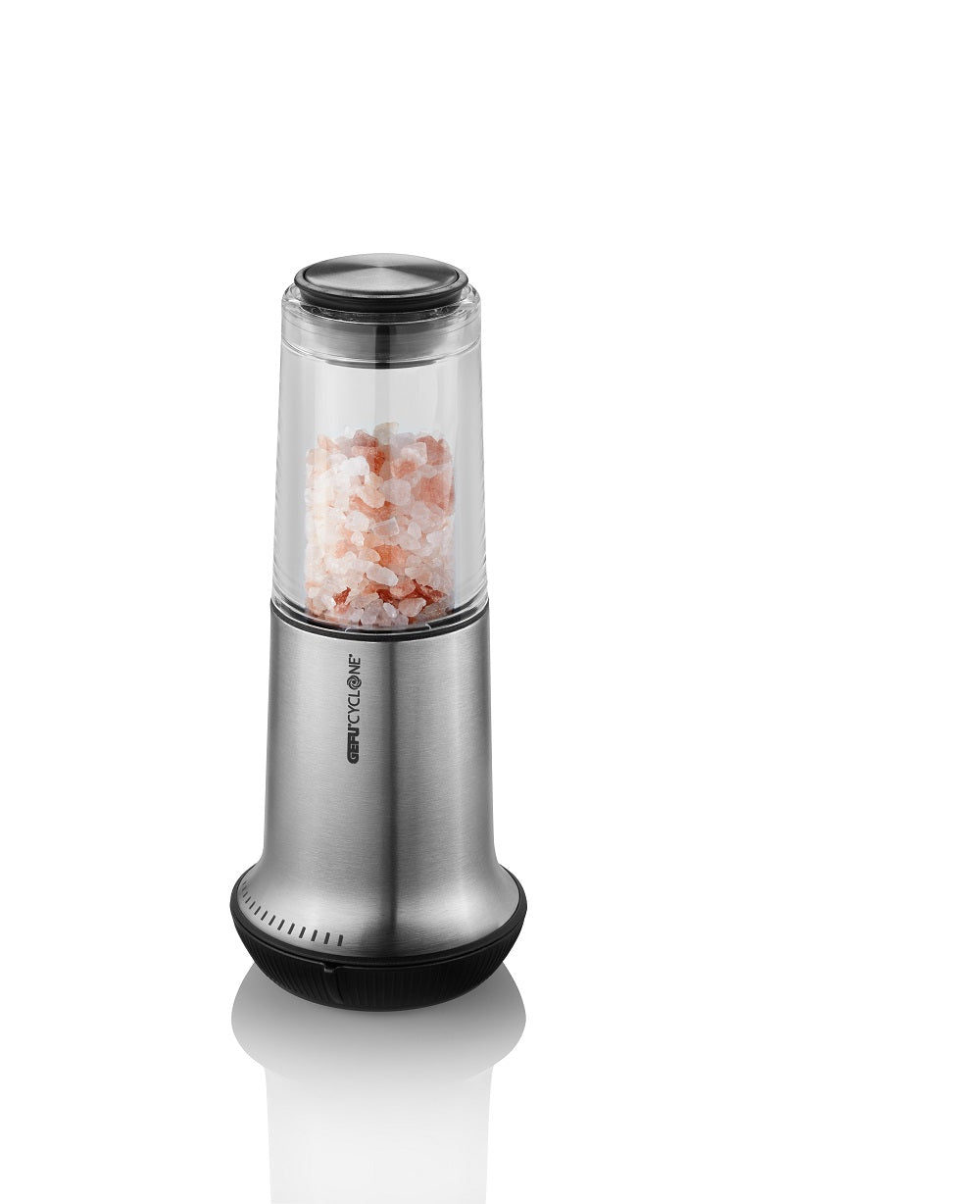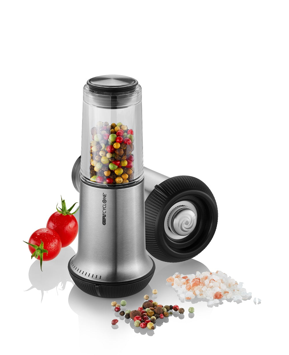 It’s in your hands: the innovative X-PLOSION mill combines a modern design, superior technology and a creative culinary technique. Equipped with the impressive CYCLONE precision grinder, it grinds salt crystals and peppercorns especially quickly, easily and efficiently, all the while producing the perfect level of grind, from extra-fine to extra-coarse. An X-PLOSION always brings out the full, natural flavor of pepper and salt, from preparation to seasoning.high-quality CYCLONE ceramic cone grinder for the utmost precision and efficiencyexternal 14-step grind adjustment, from a fine powder to extra-coarseeasy-refill spice chamberairtight lid to optimally seal in aroma and protect against moisture 6,2 cm, H 15,0 cmhigh-grade stainless steel / plastic / ceramic grinder / aluminumAll X-PLOSION mills are equipped with GEFU’s innovative CYCLONE precision grinder, which grinds salt crystals and peppercorns especially quickly, easily and effectively. Which comes as no wonder: the extra-large CYCLONE grinder, made of high-performance ceramics, is equipped with significantly more teeth than a standard grinder, making it six times more efficient. A higher number of big razor-sharp teeth to effortlessly break up even coarse crystals and peppercorns. A higher number of fine teeth, producing exceptionally uniform results in no time at all, whatever the grind setting. CYCLONE â€?how professionals grind today. 20 year guarantee