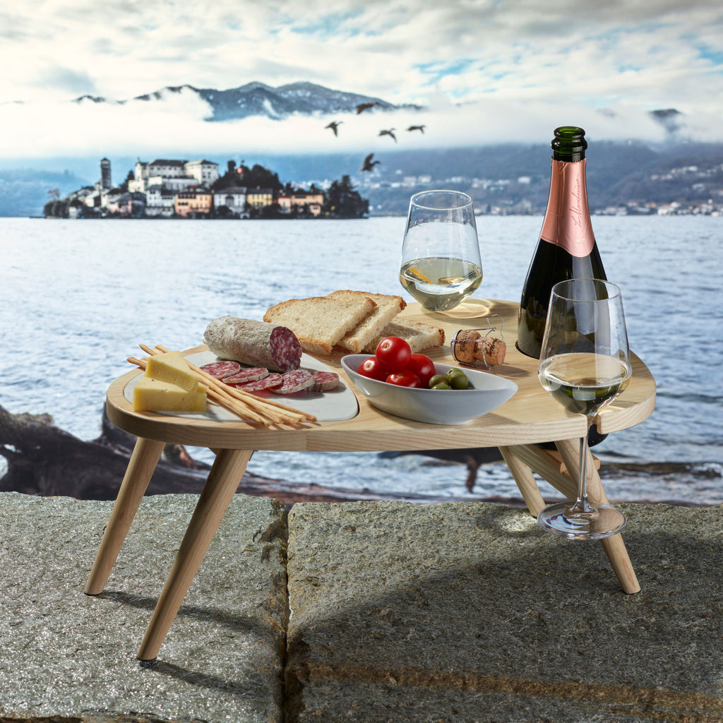 Portable Wine Picnic Foldable Table in solid Ashwood