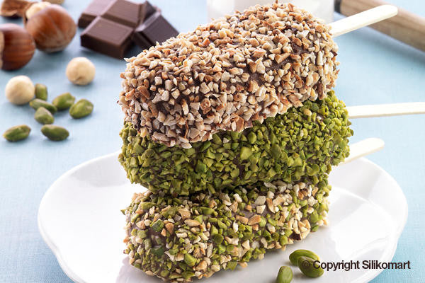 Every item is made up of two silicone molds with 2 cavities each, 50 wooden sticks and a recipe booklet with 6 recipe for preparing ice creams without using the ice cream machine.Size:93 x 48 h 25 mmVolume: 180 ml