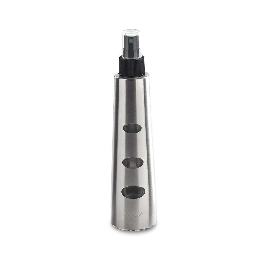The 200 ml Spray Oil Coated in stainless steel, satin finish, is practical and fast to dose the right amount of oil directly on food without excess. The stainless steel coating guarantees protection from light by slowing down the oxidation processes of the oil. Easy to fill and clean Stainless steel and PET. Capacity 0.20L. Dimensions 5.1x5.1x21.5 cm