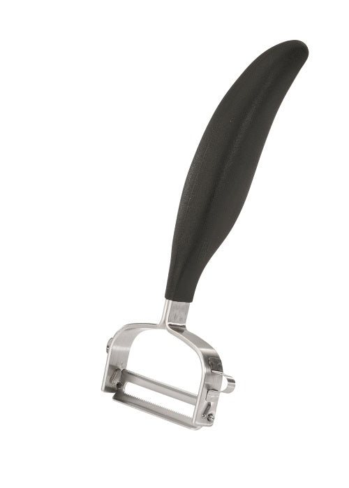 Japanese peeler with a high-grade steel blade for tomatoes, peppers and kiwi. It has a smaller spoiler and the peeler, so that nothing sticks. Eyer on both sides for right-handed and left-handed use.