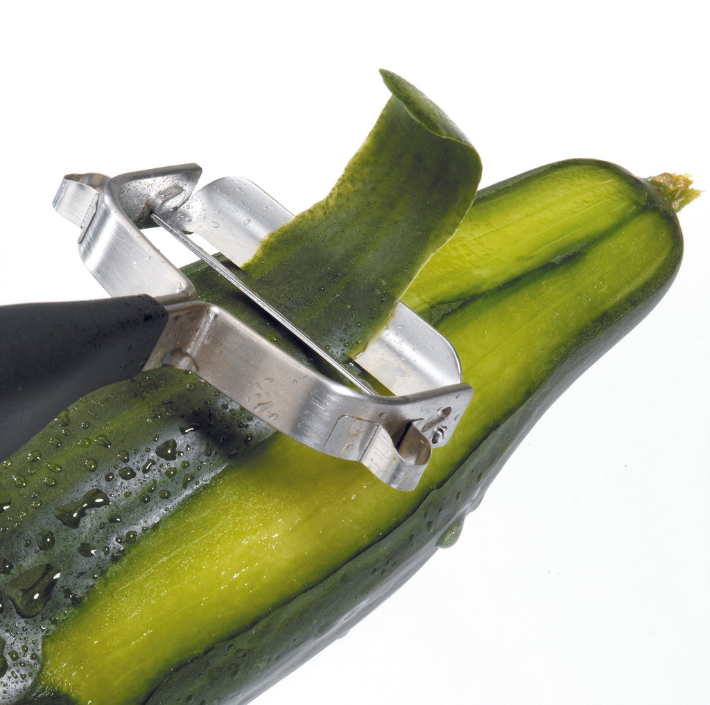 Japanese peeler with a high quality steel blade for peeling asparagus, fruit and vegetables.