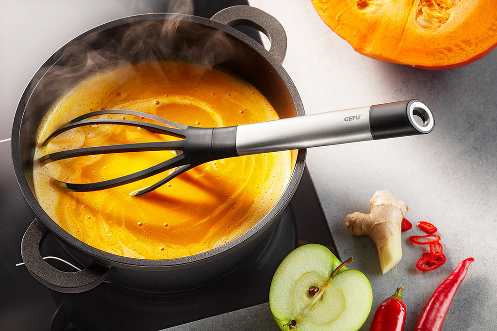 The indispensable all-rounder for effortlessly whisking creamy sauces, carefully folding in foamy egg whites, making airy, even cake mixture, perfectly bound sauces and much more. Keeps its form and is ideal for use with coated pots and pans.